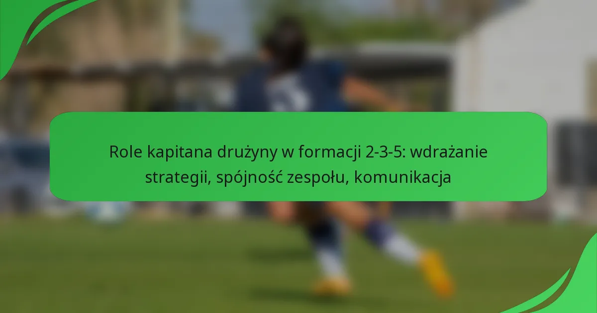 Kapitan drużyny odgrywa kluczową rolę w realizacji strategii w formacji 2-3-5, zapewniając zgodność zawodników i skuteczną komunikację. Obejmuje to przekładanie planów taktycznych na konkretne decyzje na boisku, jednocześnie wzmacniając spójność zespołu i zdolność do adaptacji w trakcie meczu.