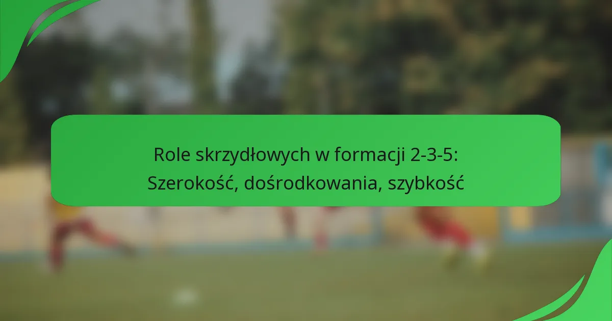 Skrzydłowi w formacji 2-3-5 odgrywają kluczową rolę zarówno w strategiach ofensywnych, jak i defensywnych. Ich główne obowiązki obejmują zapewnienie szerokości w ataku, dostarczanie dośrodkowań, wykorzystywanie szybkości do rozciągania obrony oraz wspieranie wysiłków defensywnych, gdy jest to konieczne.